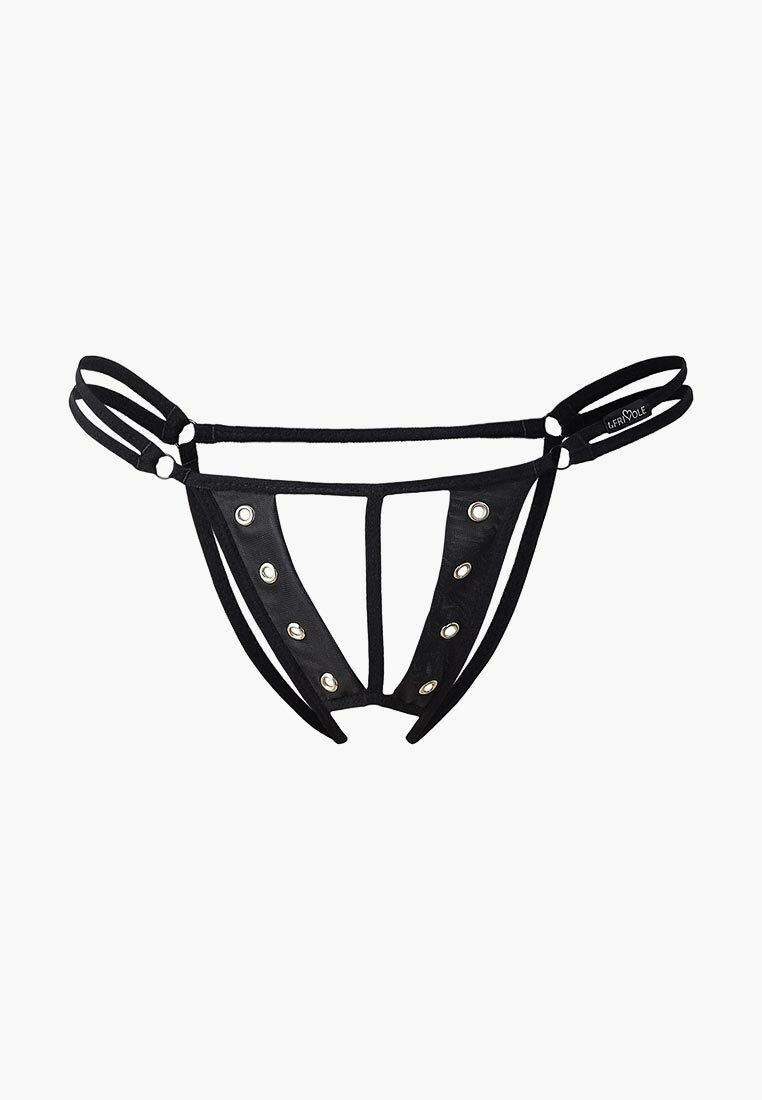 Трусики с доступом в стиле БДСМ из лент c металлическими заклепками. Брутальные элементы декора на хрупкой женской фигуре выглядят очень сексуально. Сведи его с ума своим новым образом. Замани, соблазни, лиши сна и покоя. Чтобы заняться сексом, снимать трусики не нужно. Перед тобой откроются головокружительные возможности для эротических экспериментов.